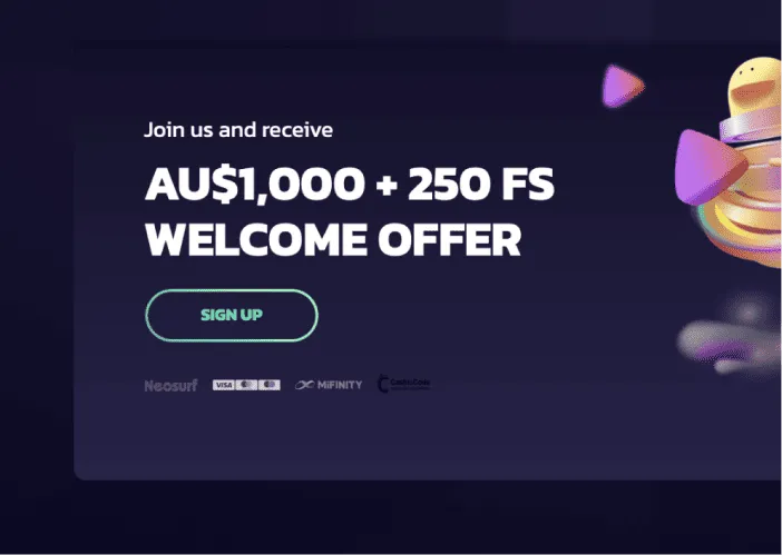 Unlock a 150% Welcome Bonus up to AU$1000 + 250 Free Spins! Spin your way to fortune now!